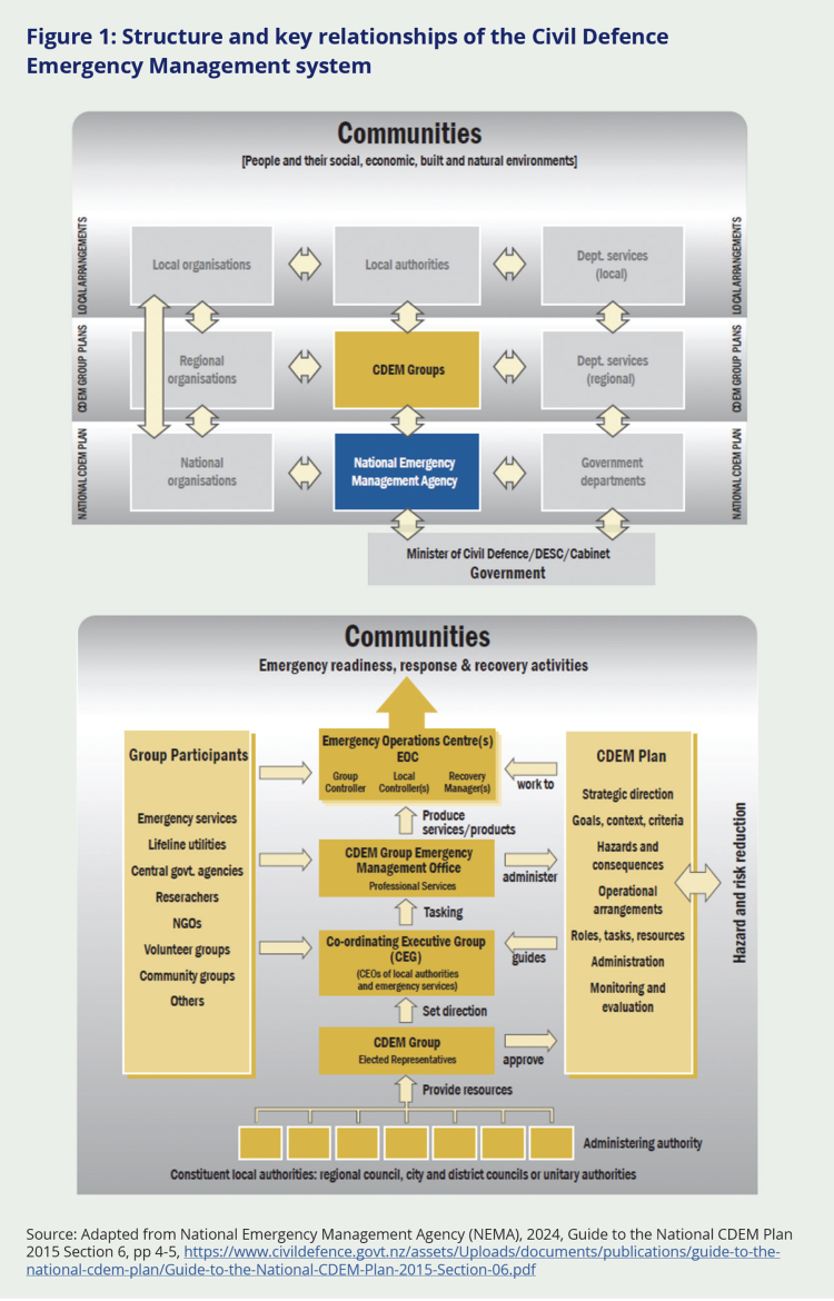 Figure 1: Structure and key relationships of the Civil Defence Emergency Management system